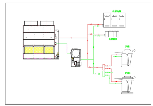 感应电炉的传统冷却技术采用开挖一定量大小的水池、工业冷水机或使用开式冷却塔,用硬水直接进行冷却,然而开式冷却塔对换热设备与系统管道的腐蚀、结垢、粘泥三大弊端是造成系统管路严重腐蚀,钙、镁离子与碳酸钙沉淀结构的主要原因,不但降低了热效率(1毫米厚的垢层大约导致8%能源损失), 而且极易导致可控硅频繁烧毁。开式冷却塔循环水在与空气中接触中,吸收了大量的灰尘、泥沙、飞虫、菌藻孢子等,通过大量喷发的水雾对塔体附近工作人群造成健康威胁。在水资源日趋紧张的背景下,取代传统的开式冷却塔成为当今时代潮流。