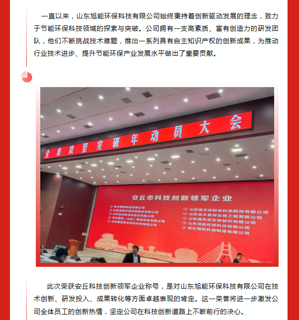全市攻坚突破年动员大会召开,旭能荣获“安丘市科技创新领军企业